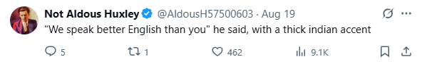 그는 매우 진한 인도식 악센트로 ‘우리 영어가 당신들보다 낫다’고 말했어요!