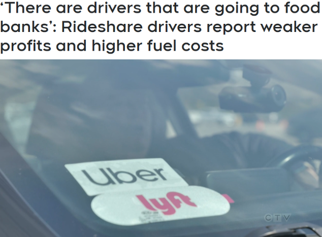 차량 호출 서비스 운전기사들이 10년 만에 최악의 시기를 겪고 있으며, 하루에 70캐나다달러도 채 벌지 못하고 있습니다.