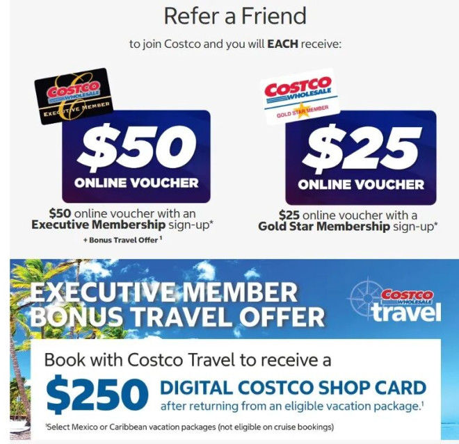 캐나다의 대형 유통업체 코스트코(Costco)가 최근 다양한 회원 혜택 행사를 선보였다. 신규 가입자, 친구 추천자 및 등급을 업그레이드한 회원은 각각 다른 금액의 온라인 상품권을 받을 수 있으며, 일부 패키지 혜택의 경우 최대 200캐나다달러에 달하는 혜택을 누릴 수 있다.