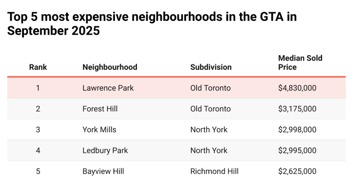 관심 있는 분들은 이러한 고가 지역에는 토론토의 고급 커뮤니티인 로렌스 파크가 포함되며, 지난달 지역 평균 주택 가격은 483만 캐나다 달러였고, 포레스트 힐은 평균 가격이 317만 5천 캐나다 달러였습니다. 또한, 노스 요크의 요크 밀스는 평균 가격이 299만 8천 캐나다 달러였고, 레드버리 파크는 평균 가격이 299만 5천 캐나다 달러였습니다. 5위는 리치먼드 힐의 베이뷰 힐로, 일반 주택의 평균 가격은 262만 5천 캐나다 달러였습니다.
