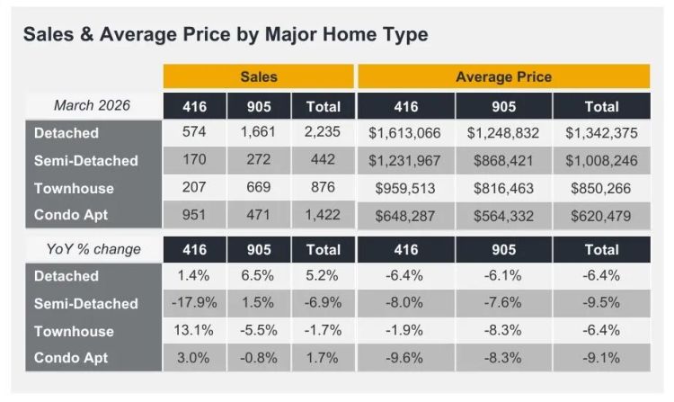 2026년 3월, 광역 토론토 지역의 기존 주택 판매량은 6개월 만에 처음으로 전년 동기 대비 증가세를 기록했습니다.