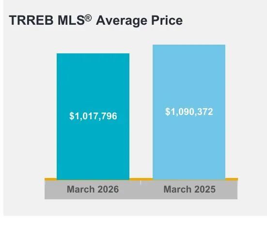 판매량은 소폭 반등했지만, 주택 가격은 계속 하락하고 있습니다. 3월 광역 토론토 지역의 평균 주택 매매가는 1,017,796달러로, 작년 3월 대비 6.7% 하락했습니다.